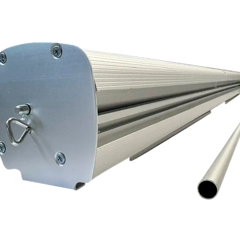 El Roll Up Banner es uno de los sistemas más elegantes para interiores. Su sistema retráctil enrolla el pendón dentro de la base de aluminio, protegiéndolo y permitiendo un montaje en segundos.